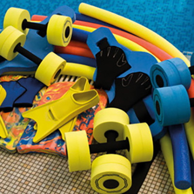 ten (Noodles, Schwimmbretter, Aquajogger) und Formen der Aqua-Fitness