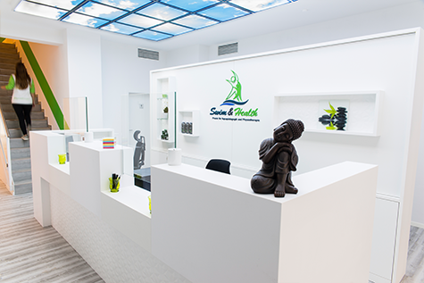 In unserer modernen Praxis erwarten Sie großzügig geschnittene, lichtdurchflutete Behandlungsräume. Die technische Ausstattung entspricht neuesten Standards. So sorgt eine eigene Lüftungsanlage für die geregelte Frischluftversorgung sämtlicher Räume. Der barrierefreie Zugang mittels Aufzug, selbst im ersten Stock, ermöglicht eine hervorragende Erreichbarkeit aller Bereiche der Praxis. Der einladend gestaltete Empfangsbereich mit eigenem Wasserspender empfängt Sie mit angenehmer Atmosphäre. Lassen Sie sich von den Damen an unserer Rezeption mit einem Lächeln begrüßen. Wir freuen uns auf Sie in Swim & Health, der Praxis zum Wohlfühlen.